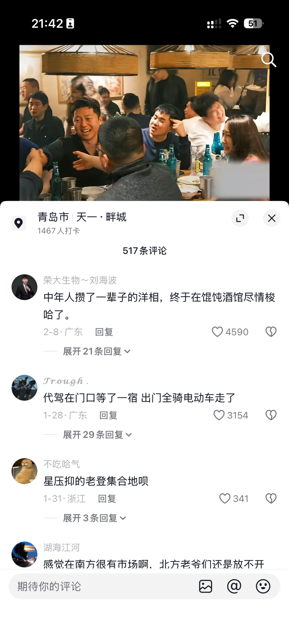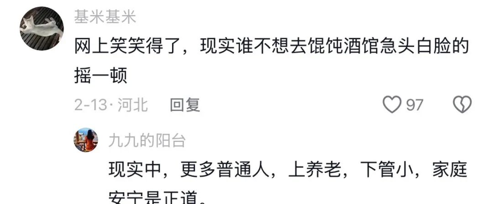 (抖音上对于“馄饨酒馆”视频的评论)
